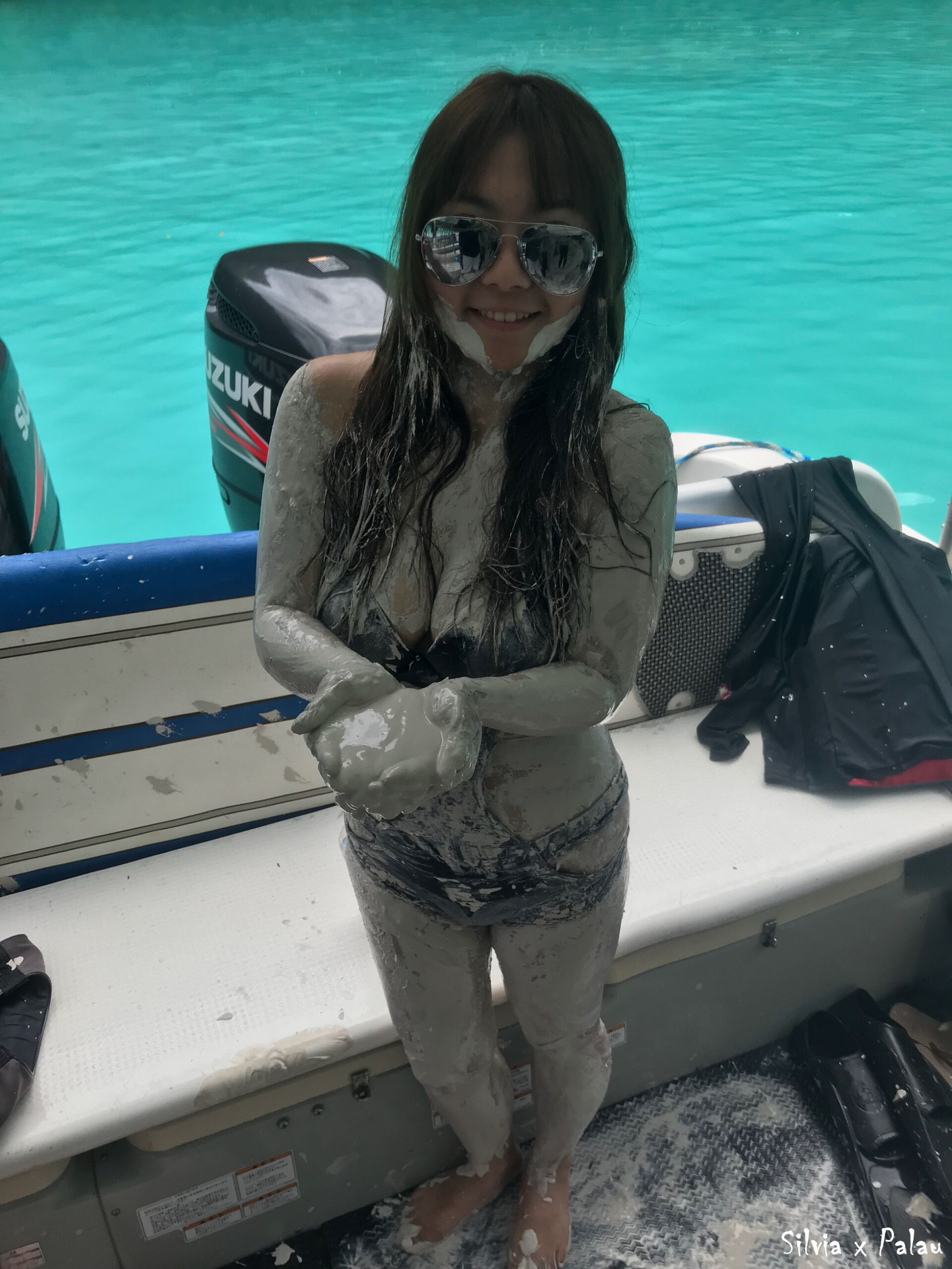 等船家把火山泥弄上船後,千萬不用客氣,就大量塗大量抹就對了!!