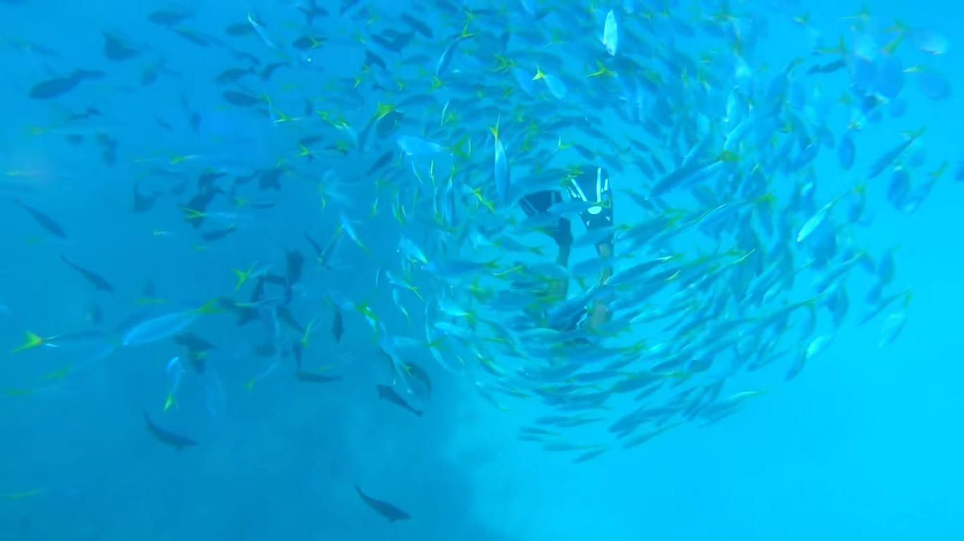 食物才剛倒下,成群的鯊魚和魚兒們就出現了,這畫面超壯觀,超令人興奮的啦!!!